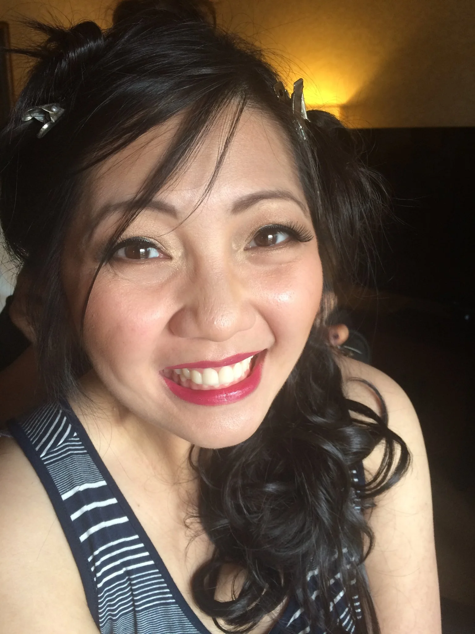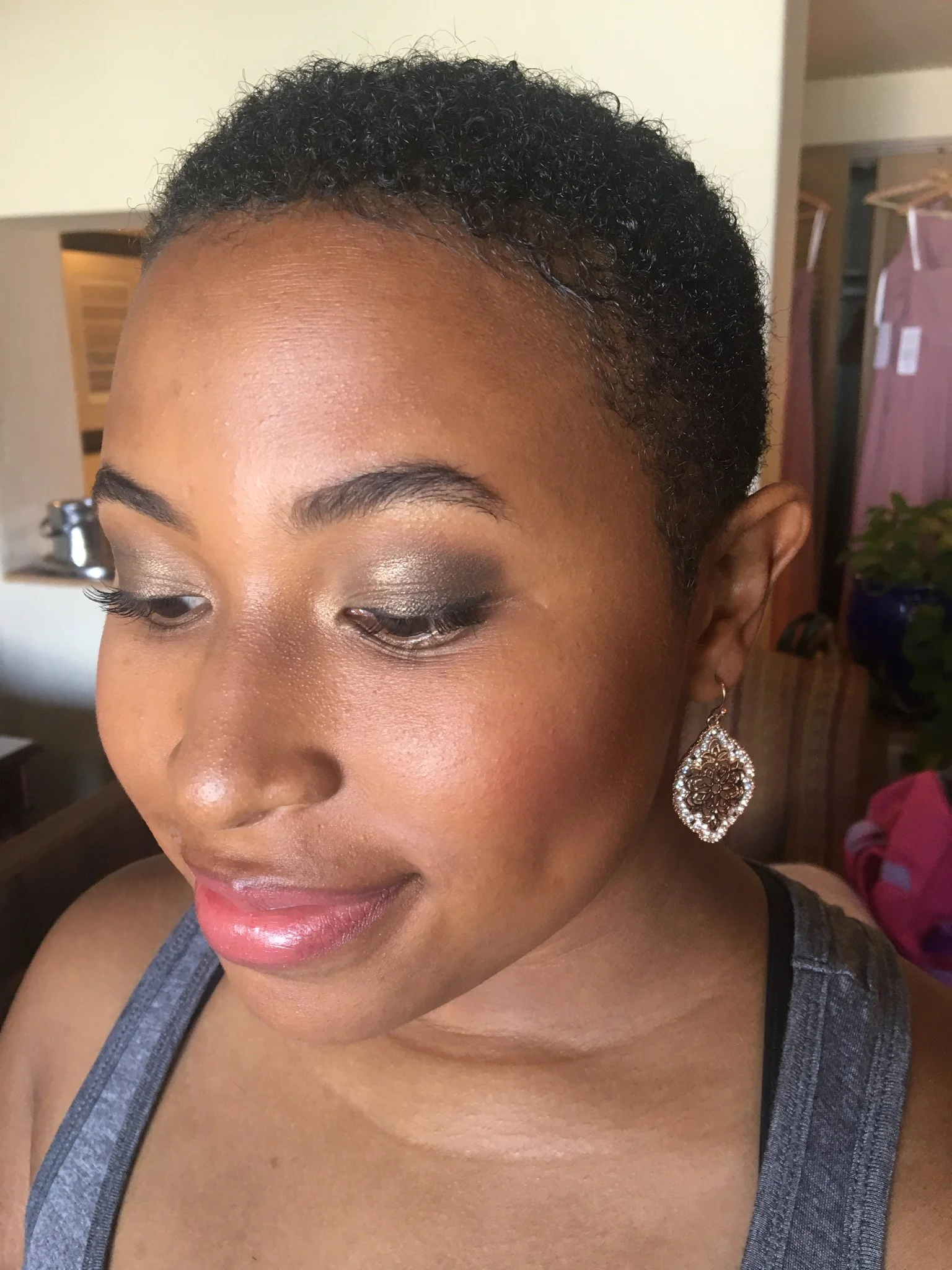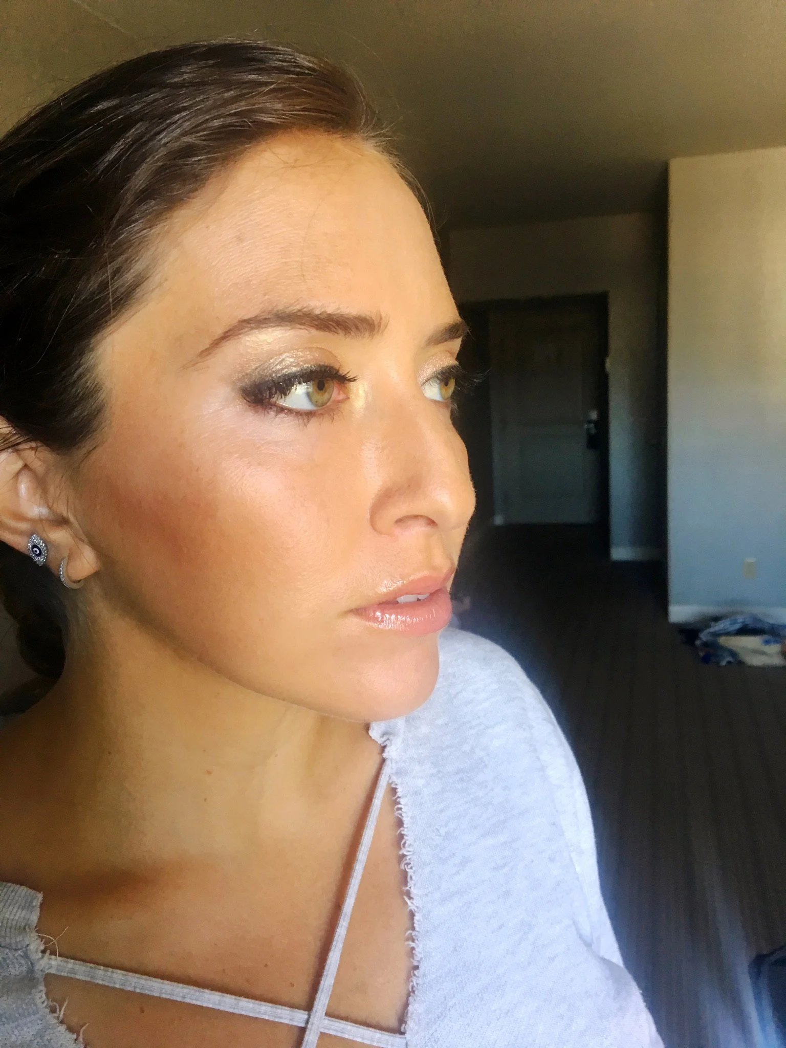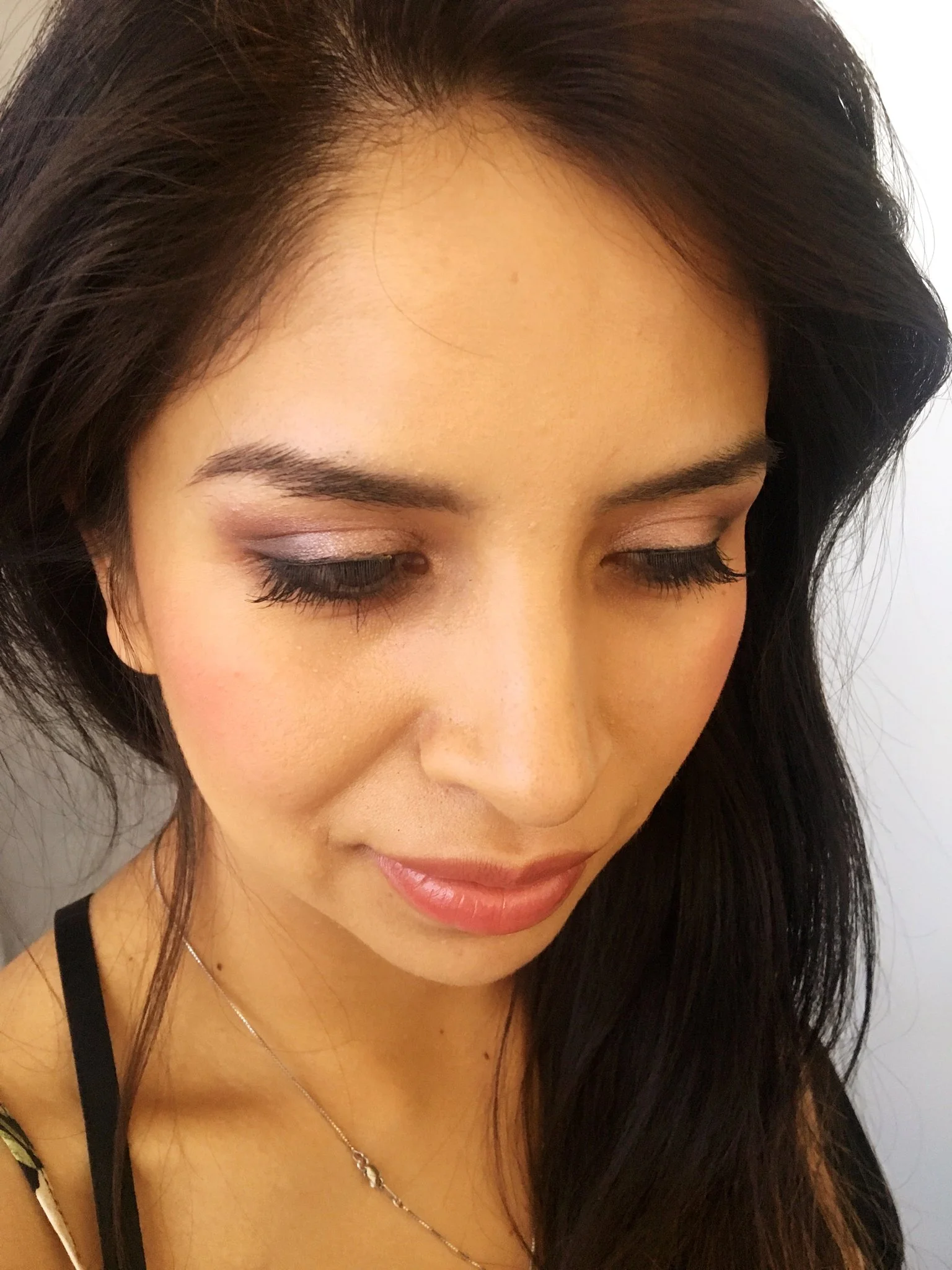This bohemian, beachy look can be found with fun curls and bronze cheeks with browns and pinks. And a little shimmer adds to the fun!